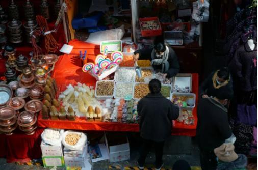 此刻,当人们走进八廓商城琳琅满目的年货海洋中,当人们走在摩肩接踵、挂满五颜六色旗帜的拉萨街头,藏历新年的气息似潮水般向人们涌来。
