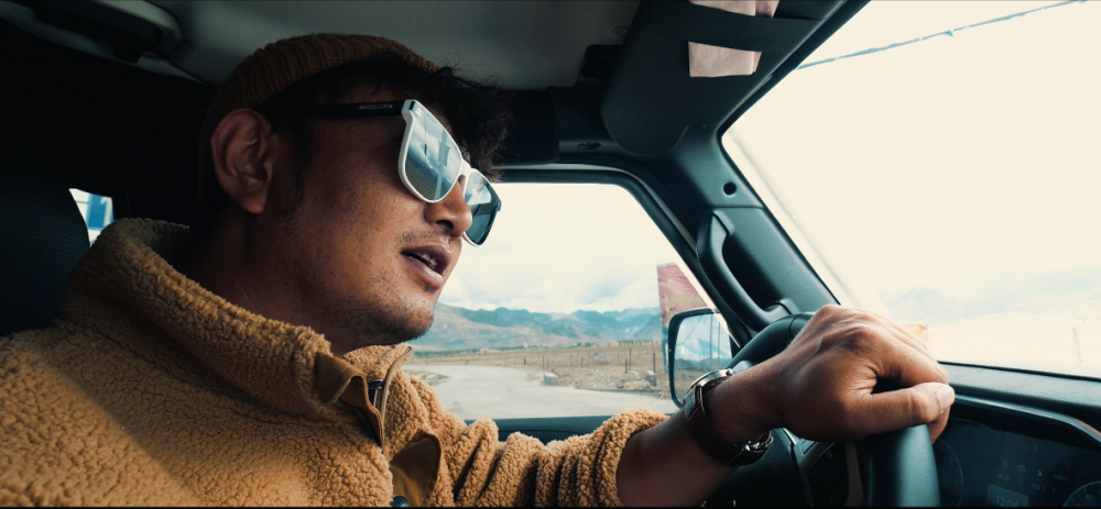 环保是索朗加措旅行的主题,汽车的颜色也与大自然融为一体。