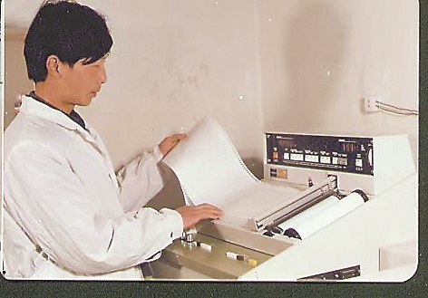 1989年检验人员操作第一台大型精密仪器红外分光光度计。(由自治区食品药品检验研究院供图)