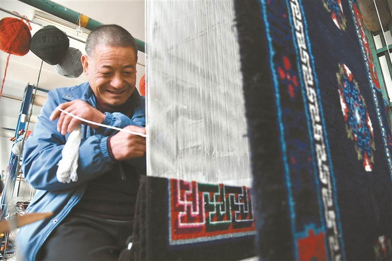 “这面藏毯织好后,就要送进中国工艺美术馆收藏了!”杨永良抚摸着手中正在织造的藏毯,眼含笑意,将这门家庭与村落世代相传的手艺娓娓道来。