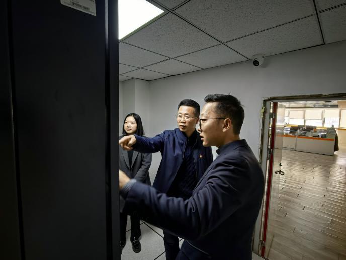 检查范围覆盖公司监控室、机房、办公区域、所有公共区域、食堂、库房等关键部位。检查组首先对机房本年度新增的网络安全设备、空调进行了逐一排查,测试运行状态,确保设备性能稳定;同时通过监控系统全面检视,逐一排查监控画面是否存在死角区域,确认所有监控设备是否正常启动、画面传输清晰,保障监控覆盖无盲区、运行无故障。在用电安全方面,重点对办公区域的电线、插座、开关等电气设施进行排查,确保无裸露、老化现象,规范大功率电器使用,提醒员工下班前关闭非必要电源;在消防安全方面,对消防设施进行全面检查,确保灭火器、消防栓等设备完好有效、标识清晰,消防通道畅通无阻;确认门窗锁闭及防护设施完好,防范盗窃、倒塌等安全风险;同时对应急联系电话畅通性进行确认,确保紧急情况下能够迅速响应、及时处置。