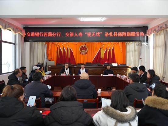 11月21日,交通银行西藏分行联合交银人寿赴西藏山南市洛扎县开展“爱无忧”线上保险捐赠活动。此次活动是交行西藏分行全面贯彻金融工作政治性、人民性的具体举措,切实落实好人行西藏分行乡村振兴工作部署,充分发挥交银集团综合化金融服务优势,为洛扎县干部群众提供关爱民生的增值金融服务,分行党委委员、副行长席振龙,洛扎县副县长郑疆参加。活动为当地群众捐赠专属保险产品,保障范围覆盖意外身故和意外伤残风险保障,以专业保险服务帮助群众构建多层次、全方位的风险防护屏障,让当地群众切实感受到交通银行集团金融服务的温度,携手当地政府提高群众的幸福感、满意度。
