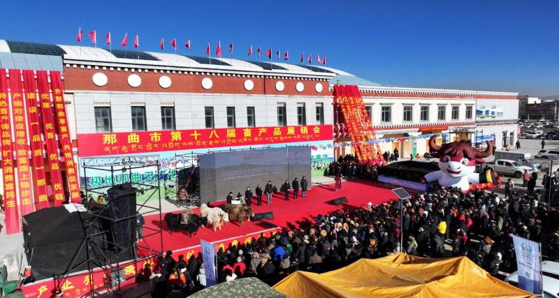 本网电 12月15日,那曲市2025年第十八届畜产品展销会在物流园区农贸市场开幕。来自全市11个县(区)的牧民合作社、养殖大户、各地采购商及消费者3000余人齐聚一堂,共赴这场兼具生态特色与民生温度的产业盛会,见证藏北畜牧业高质量发展的蓬勃生机。