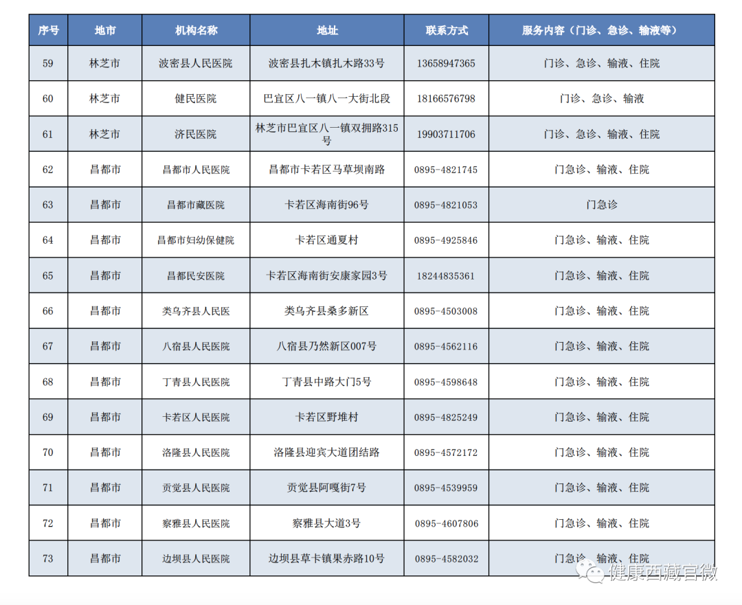 西藏自治区提供儿科医疗服务的医疗机构名单↓↓
