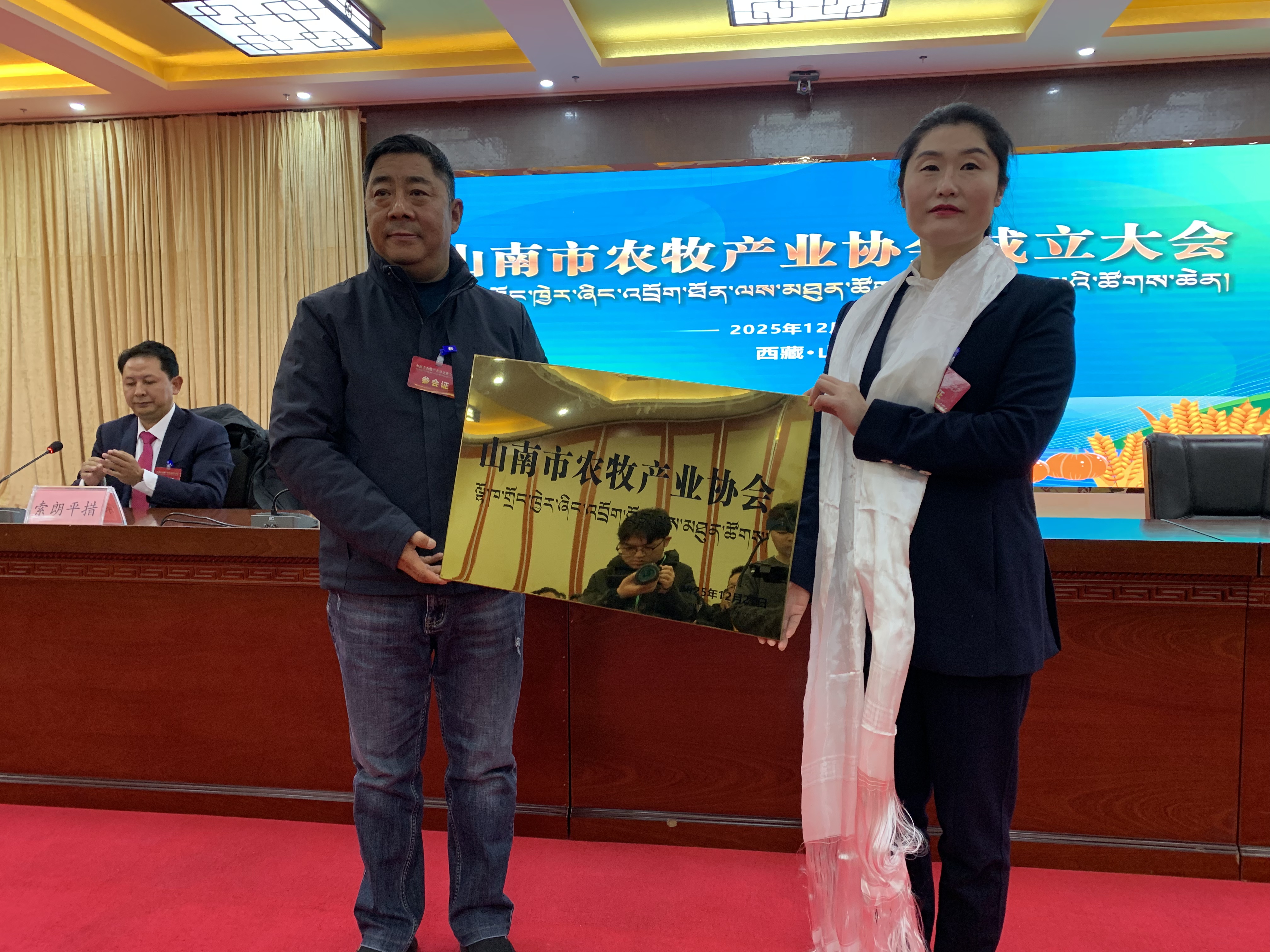 在全体与会人员的共同见证下,授牌仪式顺利举行,山南市农牧产业协会正式宣告成立,为当地农牧产业发展注入全新力量。随后,新当选的理事会理事召开第一次全体会议,选举产生了协会会长、副会长与秘书长。