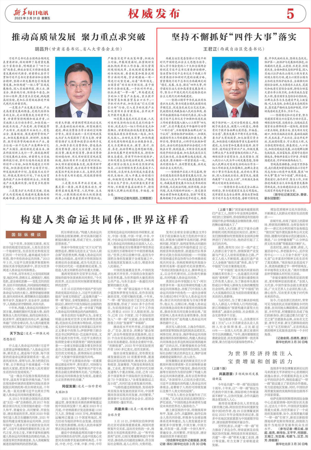 ——坚持稳中求进工作总基调,努力创建高原经济高质量发展先行区,切实把以人民为中心的发展思想落到实处。西藏高质量发展不仅仅是单纯的经济问题,而是政治问题、经济问题、社会问题、民生问题的辩证统一。要完整准确全面贯彻新发展理念,坚持“所有发展都要赋予民族团结进步的意义,都要赋予维护统一、反对分裂的意义,都要赋予改善民生、凝聚人心的意义,都要有利于提升各族群众获得感、幸福感、安全感”,聚焦发展不平衡不充分问题,着力扩大有效投资,加大招商引资力度,加快推进川藏铁路等重大基础项目建设,大力培育和发展清洁能源、数字经济、通用航空等新兴产业,积极发展与群众生产生活紧密相关的轻工产业,确保经济当前有活力、未来有潜力。深入践行以人民为中心的发展思想,坚持把人民群众对美好生活的向往作为一切工作的出发点和落脚点,把群众身边的小事当作各级党委、政府的大事来抓,深入实施就业创业、教育优先、健康西藏等“十大民生工程”,不断满足各族群众对美好生活的向往。