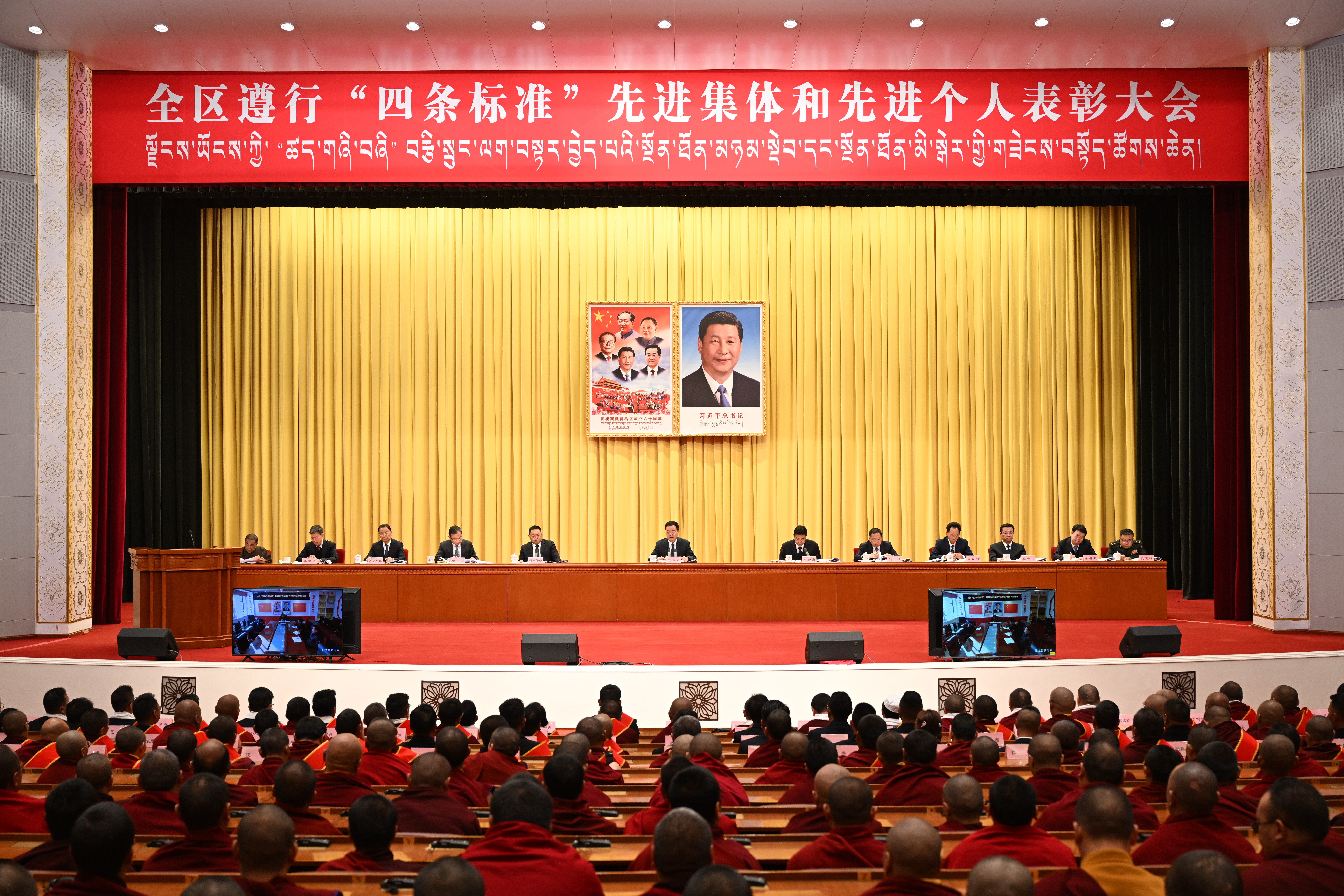 12月4日,全区遵行“四条标准”先进集体和先进个人表彰大会在拉萨举行。自治区党委书记王君正出席并讲话。记者 旦增西旦 摄