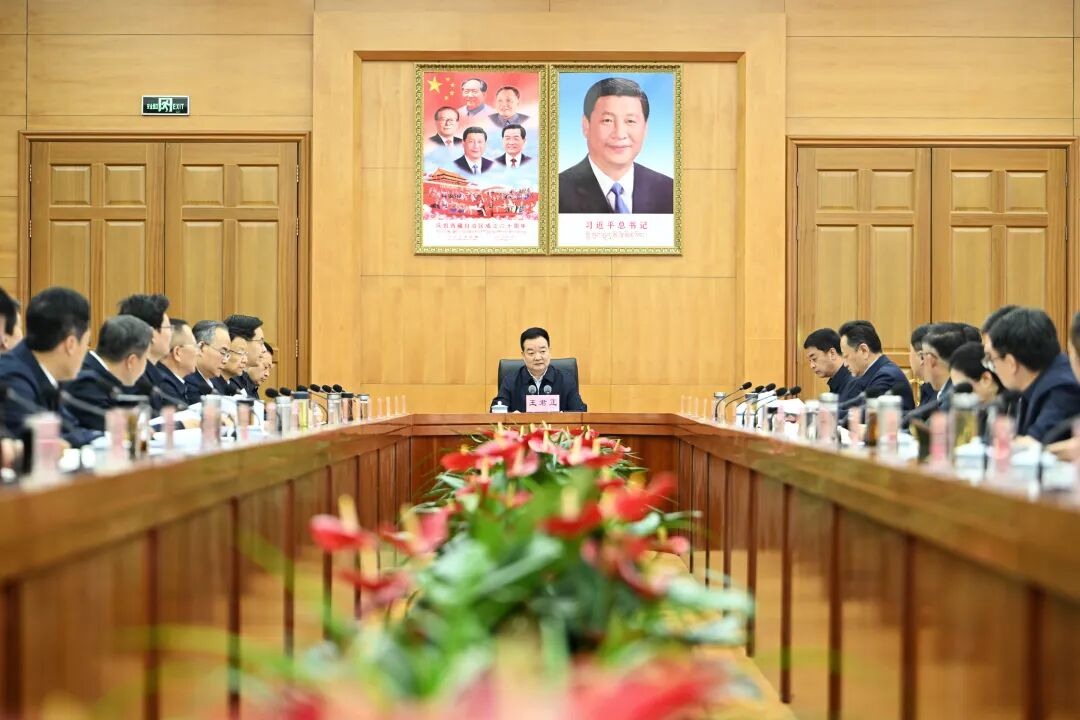 王君正指出,党的十八大以来,以习近平同志为核心的党中央高度重视西藏工作,习近平总书记多次作出重要指示批示,确立了新时代党的治藏方略,明确了稳定、发展、生态、强边四件大事,提出了长治久安和高质量发展的战略目标。2025年8月,习近平总书记在西藏视察并听取自治区党委和政府工作汇报时,对做好下一步工作提出了明确要求,强调西藏发展有自身特点,要从实际出发推动高质量发展,为我们进一步指明了前进方向、提供了根本遵循。今年以来,在以习近平同志为核心的党中央坚强领导下,一季度全区经济稳中有进、进中向好,八项经济指标增速位居全国第一,实现了“开局稳”“开门红”。在看到成绩的同时,我们要清醒认识到西藏经济运行中还存在发展不平衡不充分、总量不足、产业发展水平低等问题。全区各级各部门要坚决贯彻落实习近平总书记重要讲话重要指示精神,坚持把“三个赋予一个有利于”总要求贯穿西藏经济社会发展全过程各方面,自觉把经济工作放到治藏稳藏兴藏大局中思考谋划,不断提高政治判断力、政治领悟力、政治执行力,以实际行动坚定拥护“两个确立”、坚决做到“两个维护”。