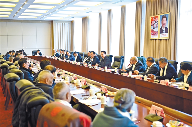 春节、藏历新年前夕,自治区党委书记王君正分别在成都、拉萨看望慰问老领导老同志,并与离退休老干部座谈。这是座谈会现场。记者 旦增西旦 摄