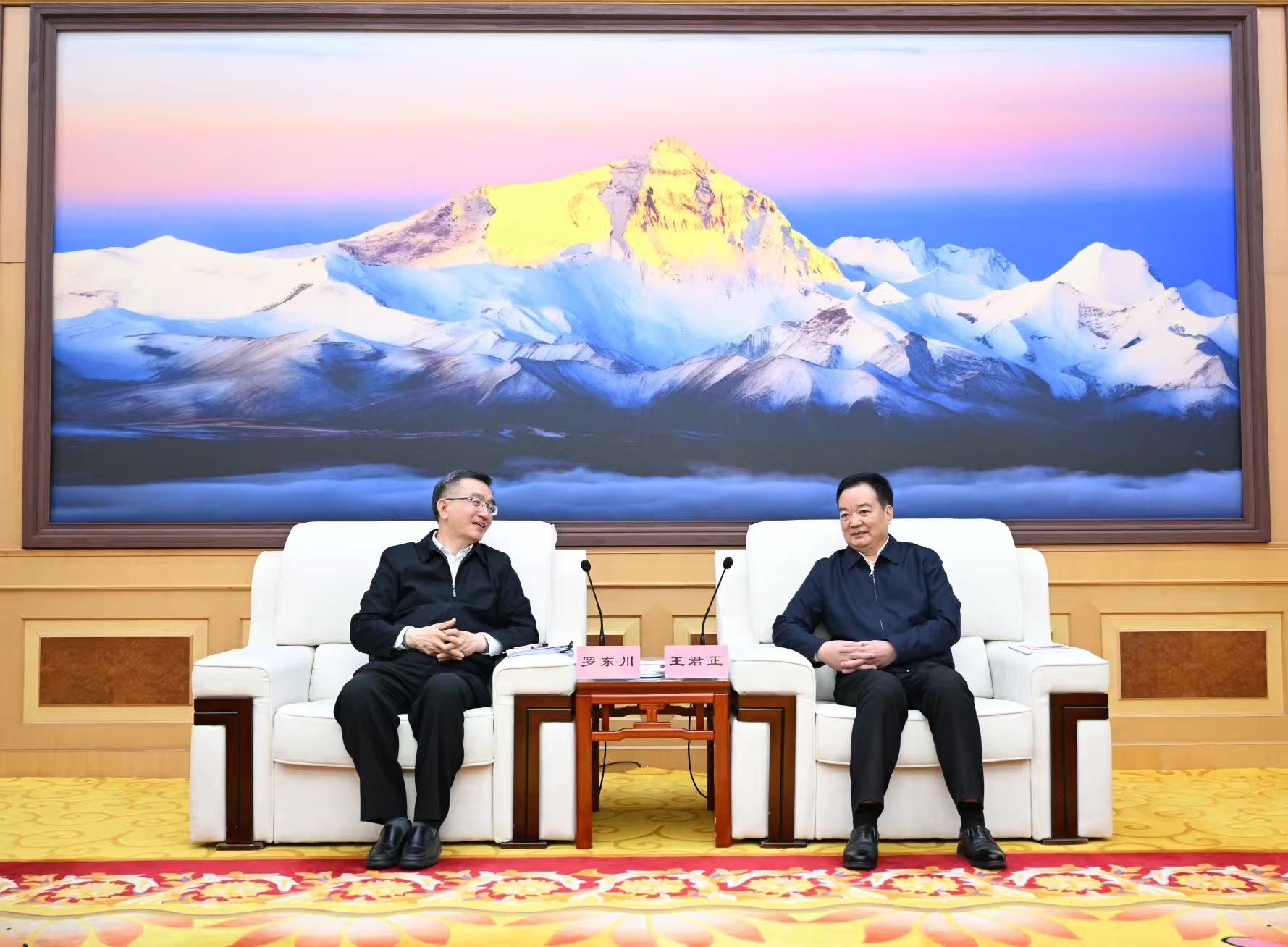 王君正指出,西藏与青海山水相连、人文相通、亲如一家,共同承担着维护国家安全和社会稳定、筑牢青藏高原生态安全屏障、推动西部大开发的使命任务。我们要认真学习贯彻习近平总书记重要指示精神,共同做好维护社会稳定工作,不断提高基层治理体系和治理能力现代化水平,按照系统推进我国宗教中国化、加强宗教事务治理法治化的要求,积极引导藏传佛教与社会主义社会相适应,确保政治安定、社会稳定、民族团结、宗教和顺。进一步铸牢中华民族共同体意识、推进中华民族共同体建设,加强人文交流合作,促进各民族交往交流交融,让两地人民心灵相通、情感交融,共建中华民族共有精神文化家园。大力推进生态文明建设,深刻认识青藏高原最大的价值在生态、最大的责任在生态、最大的潜力也在生态,认真落实青藏高原生态保护法,科学开展国土绿化行动,协同推进降碳、减污、扩绿、增长,把青藏高原打造成为全国乃至国际生态文明高地。深化全方位务实合作,积极发展高原特色优势产业,特别是特色农牧业和清洁能源产业,强化文化旅游合作,建设立体交通体系,取长补短、优势互补,为高质量发展打下坚实基础。
