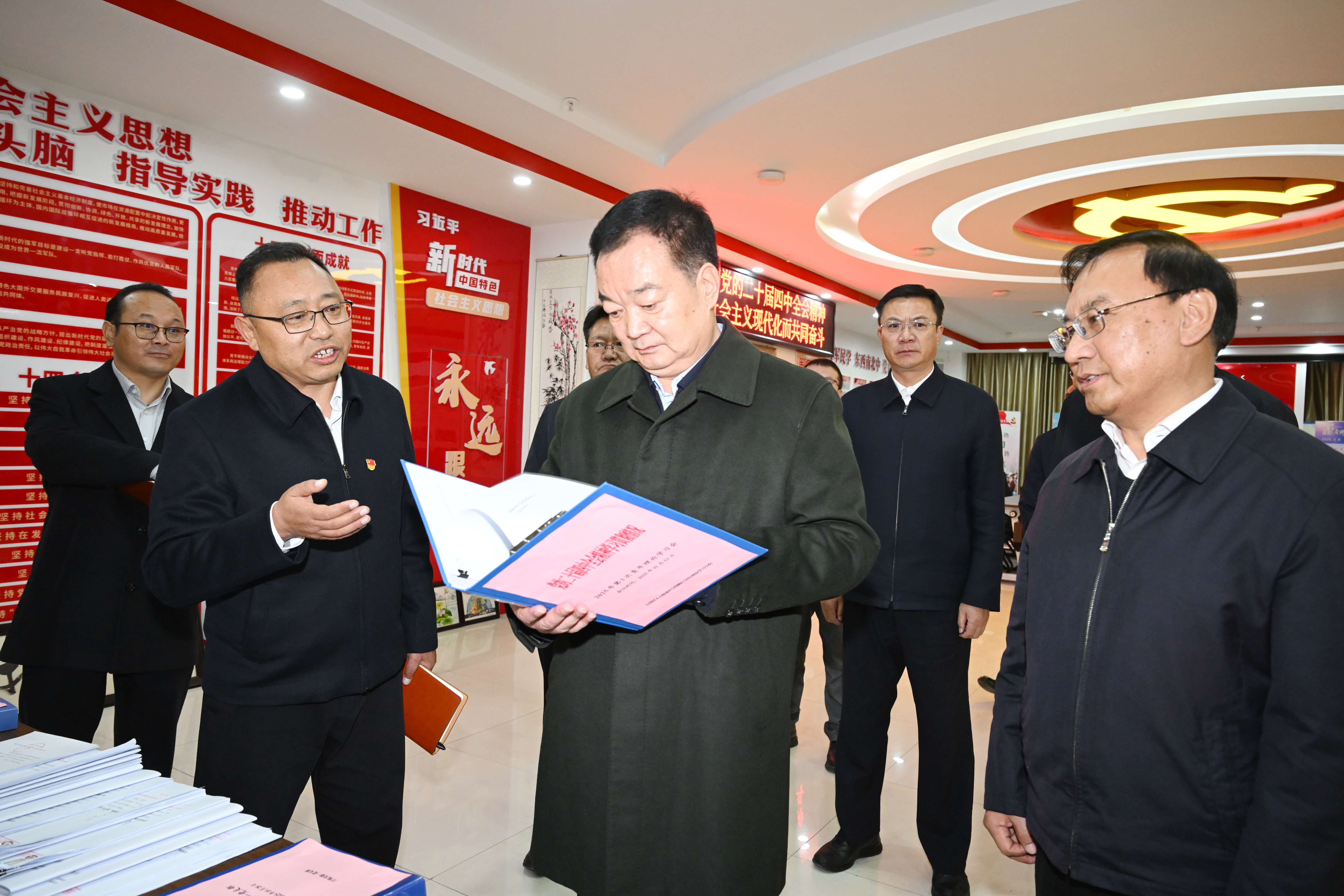 11月17日,自治区党委书记王君正在自治区人力资源和社会保障厅调研。这是王君正在党建活动室,向干部职工宣讲党的二十届四中全会精神,了解干部职工学习情况。记者 李洲 摄