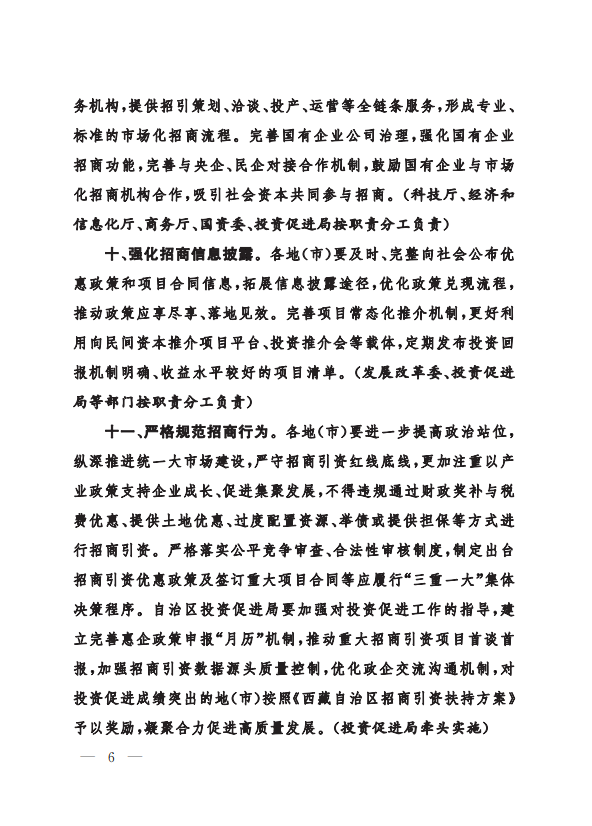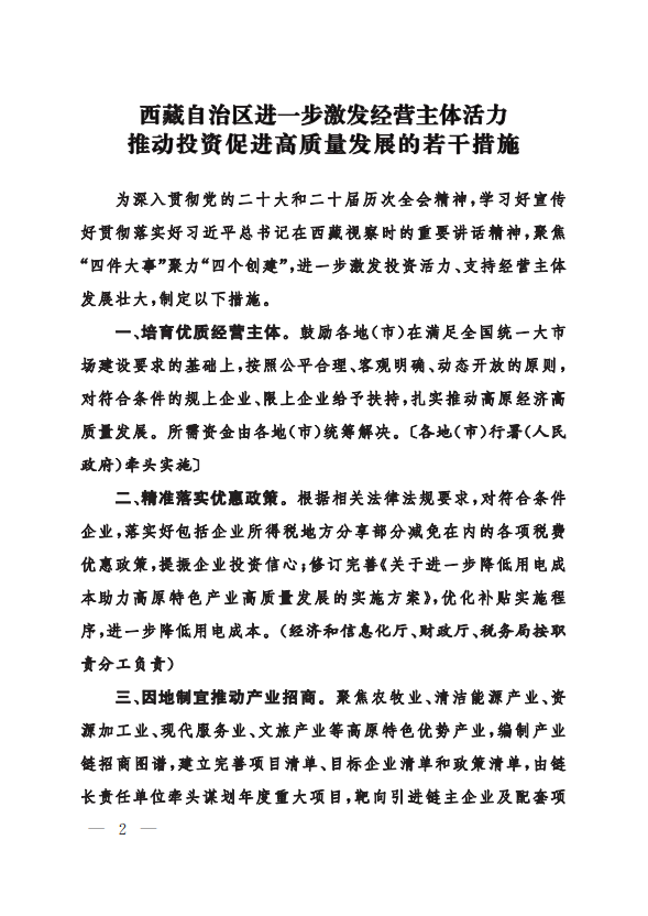 西藏自治区人民政府办公厅关于印发《西藏自治区进一步激发经营主体活力推动投资促进高质量发展的若干措施》的通知