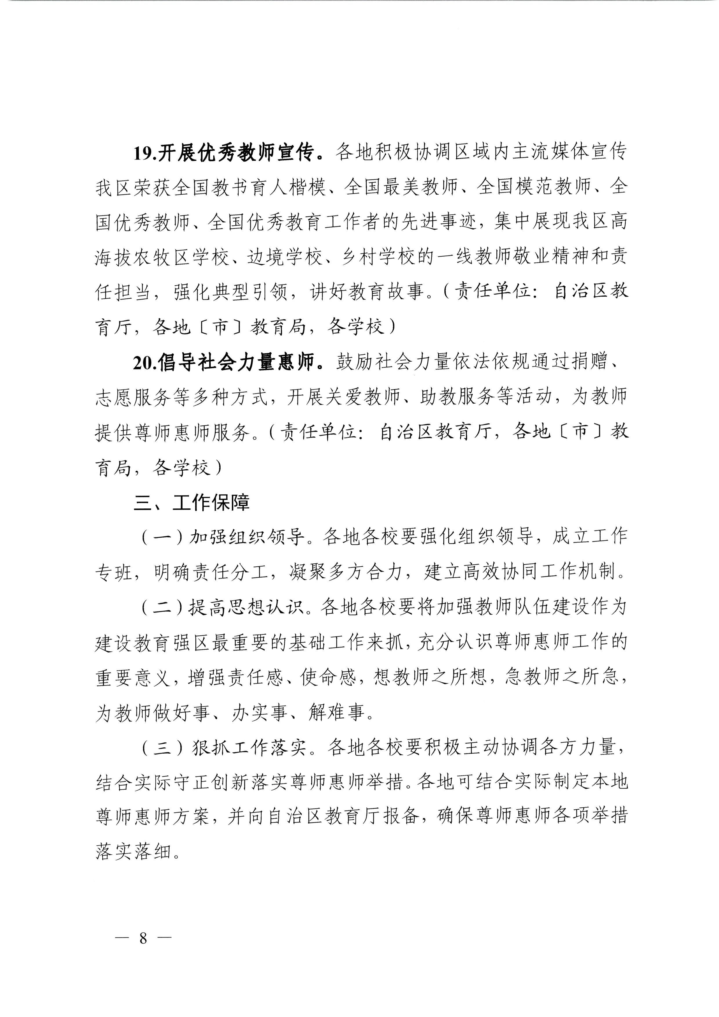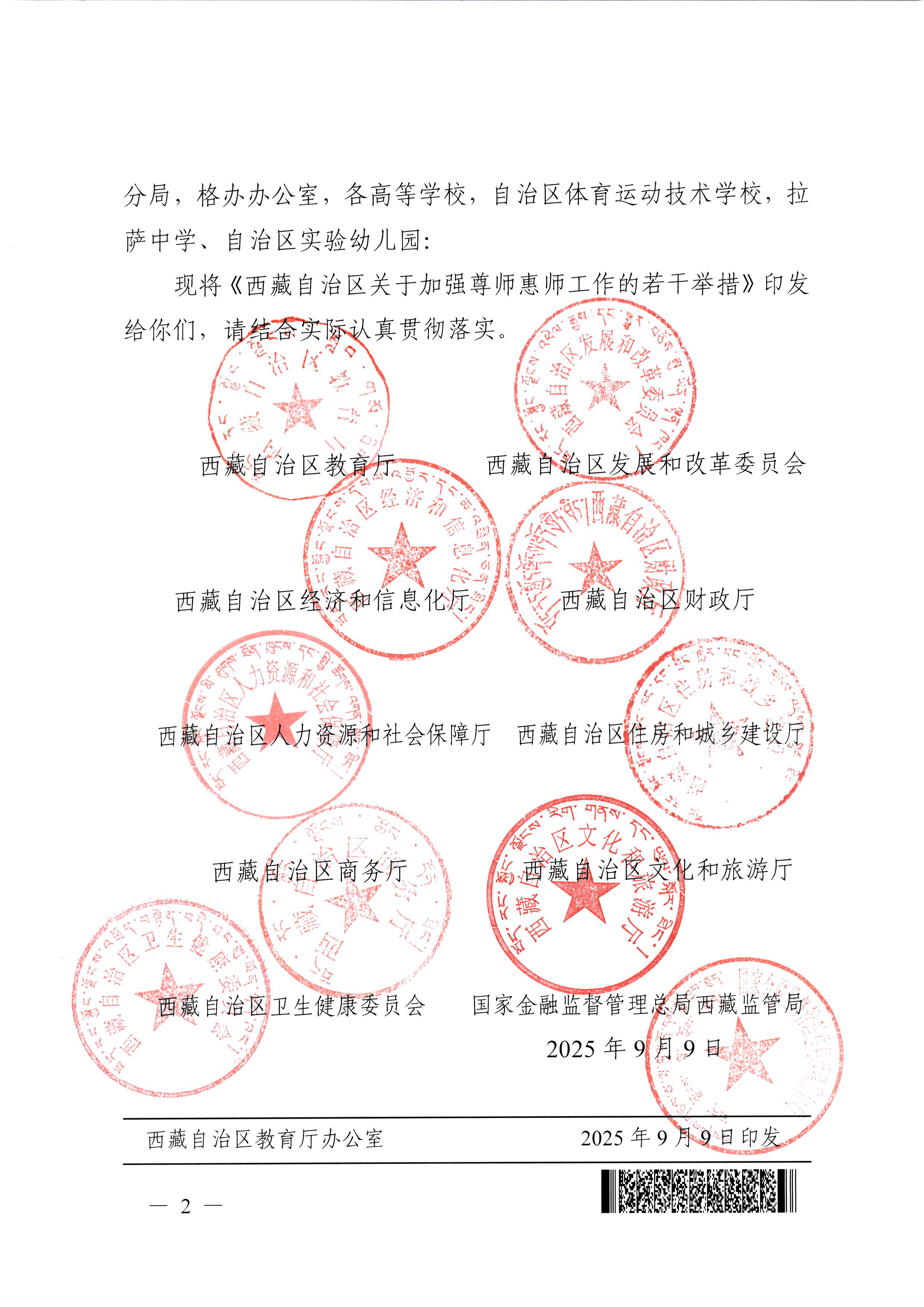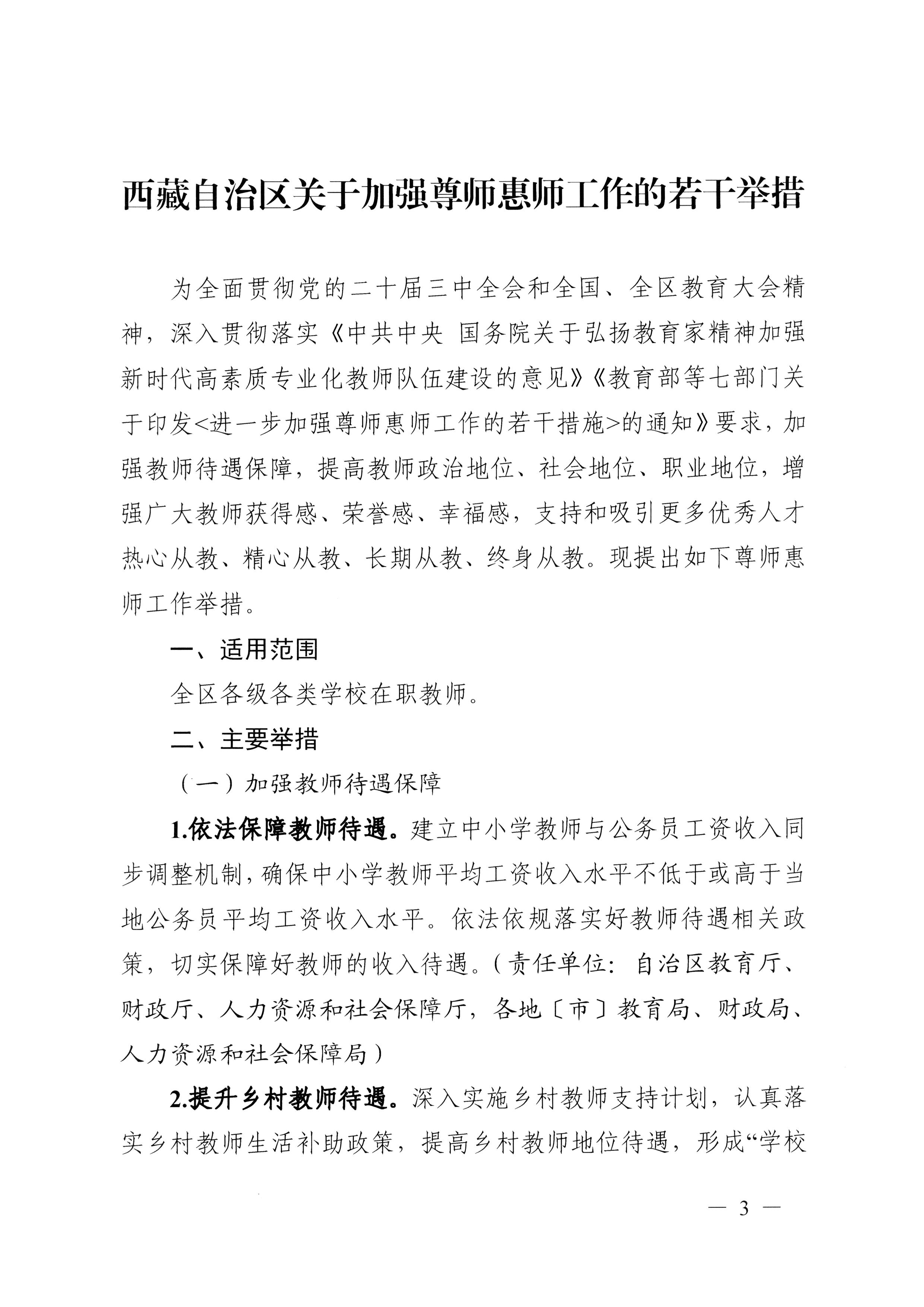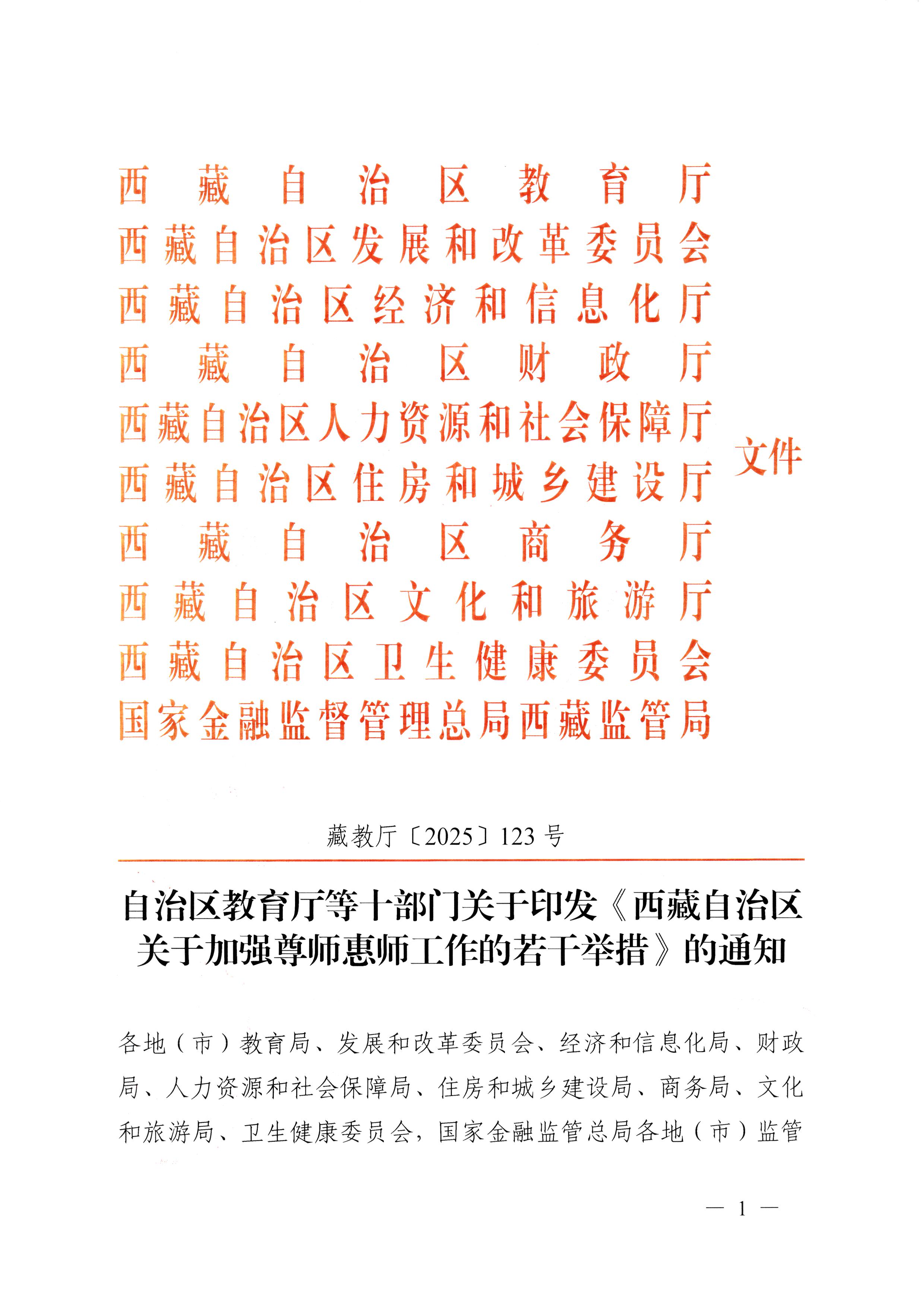自治区教育厅等十部门关于印发《西藏自治区关于加强尊师惠师工作的若干举措》的通知