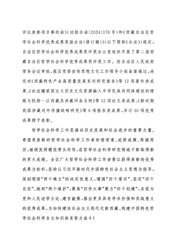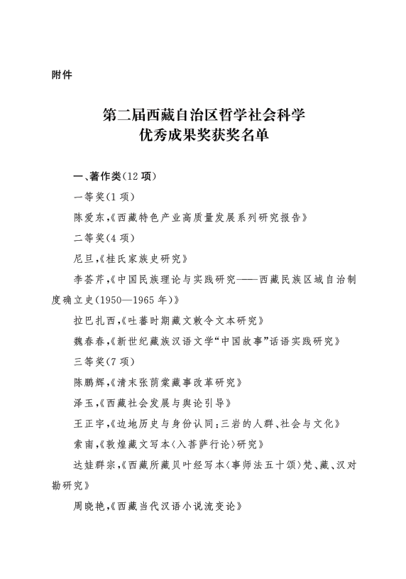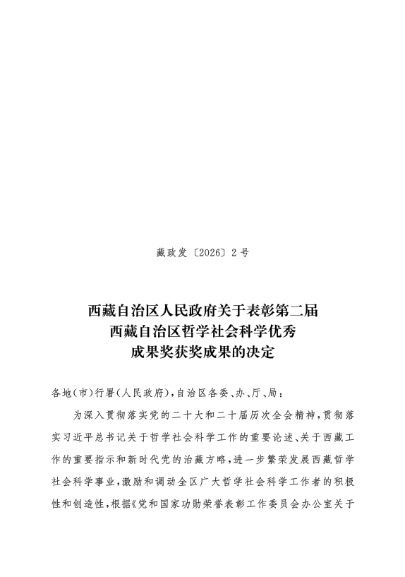 西藏自治区人民政府关于表彰第二届西藏自治区哲学社会科学优秀成果奖获奖成果的决定