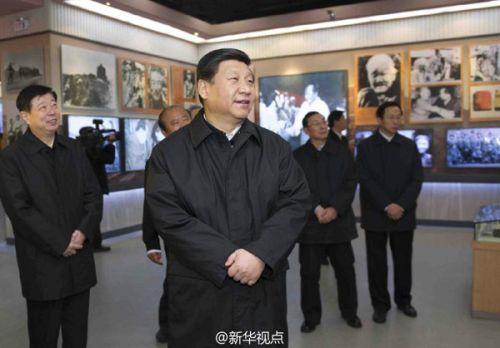 习近平在展厅会见了“沂蒙母亲”王换于孙女于爱梅等模范人物。他表示,这次来沂蒙就是看望老区人民,重温沂蒙精神。革命胜利来之不易,主要是党和人民水乳交融,党把人民利益放在第一位,为人民谋解放,人民跟党走,无私奉献,可歌可泣啊!沂蒙精神要大力弘扬。