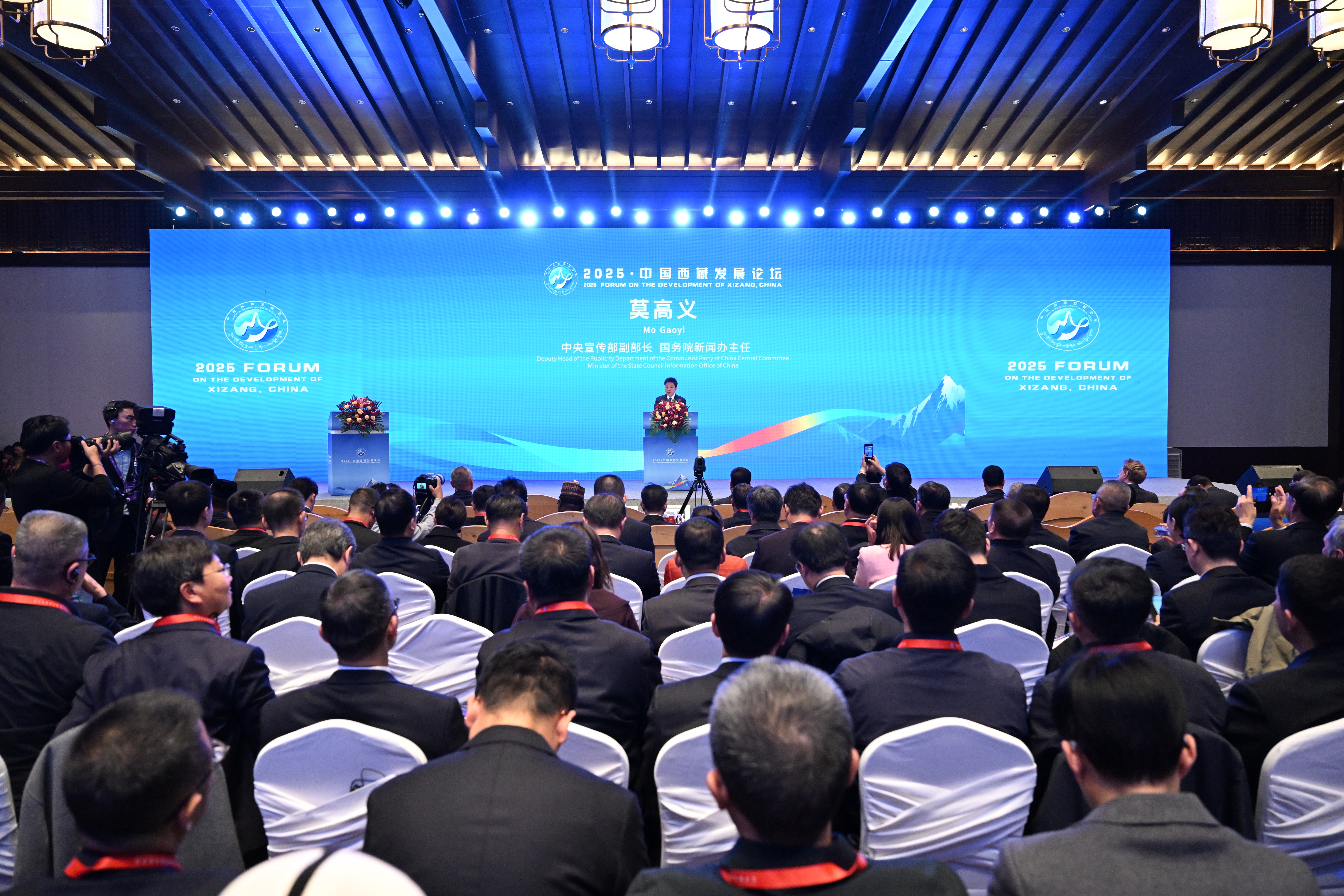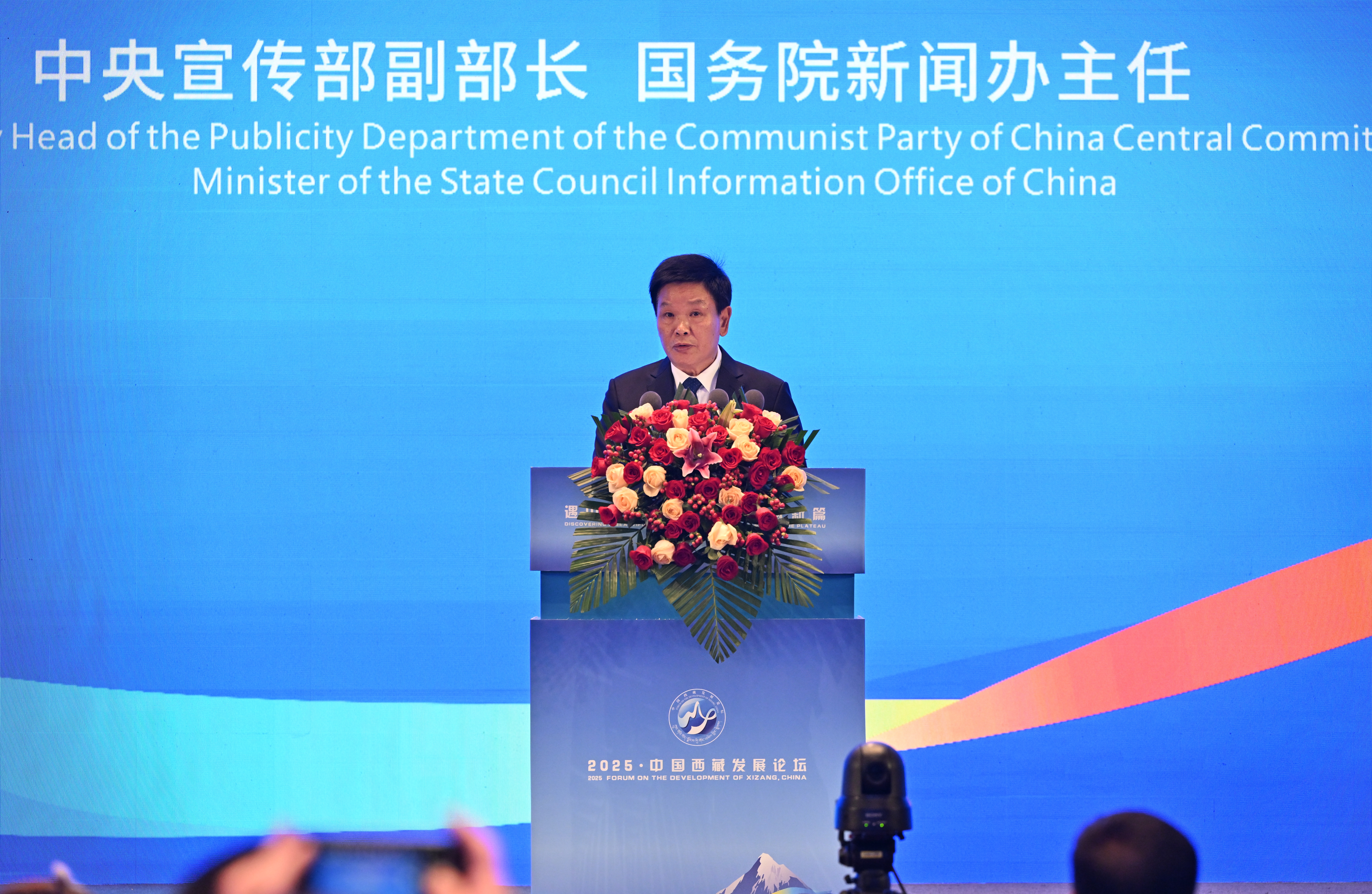 10月29日上午,以“遇见美丽西藏 书写雪域新篇”为主题的2025·中国西藏发展论坛在林芝开幕。这是中央宣传部副部长、国务院新闻办公室主任莫高义出席开幕式并致辞。记者 旦增西旦 摄